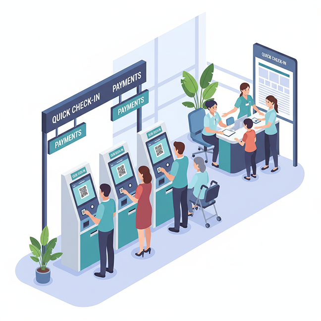 A: Kiosks automate check-ins, payments, queue management, and information retrieval, freeing staff from repetitive administrative work.